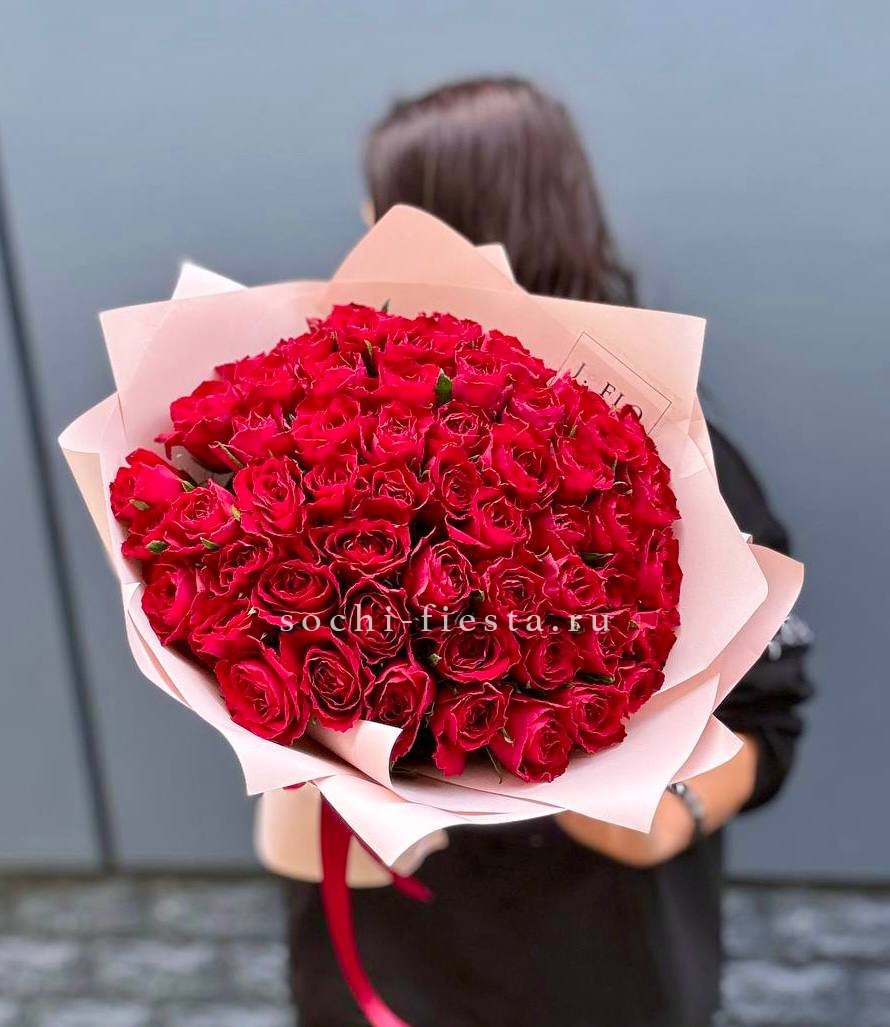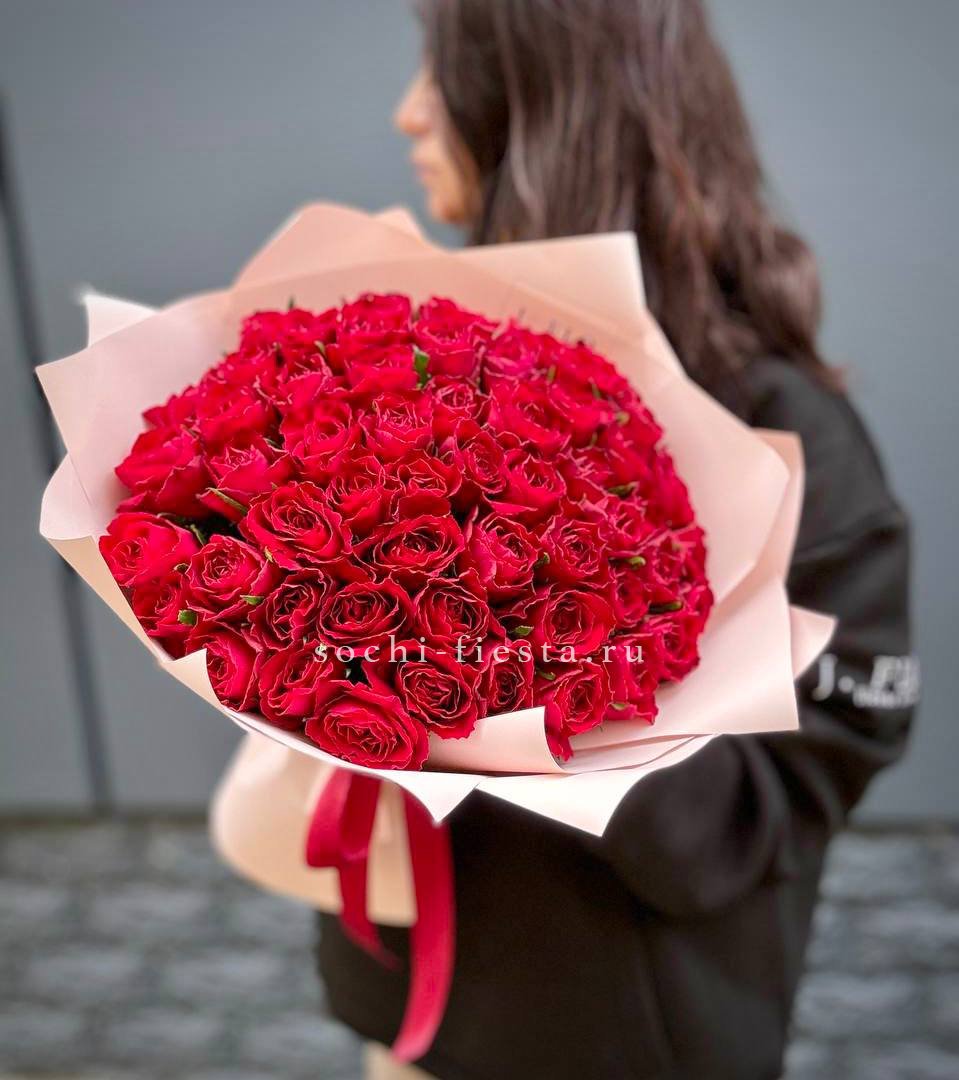 Букет из пятидесяти одного розового тюльпана держит форму благодаря плотной сборке и остается свежим долгое время. Практичное решение для тех, кто ценит естественную красоту без лишнего декора.