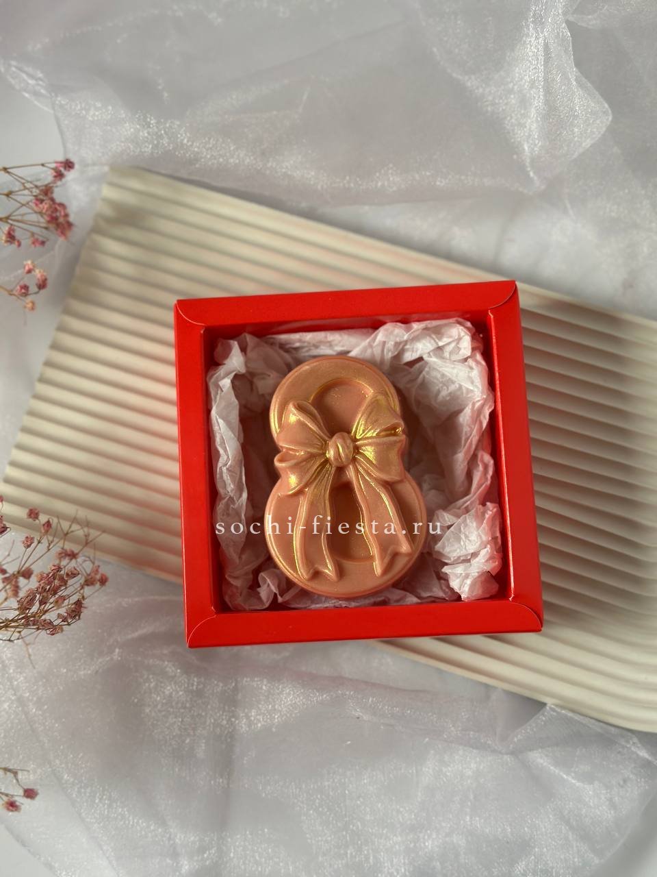 цифра 8 из бельгийского шоколада (белый шоколад: сахар, масло какао, сухое цельное молоко, соевый лецитин, натуральный амортизатор Ваниль). Ручная роспись.