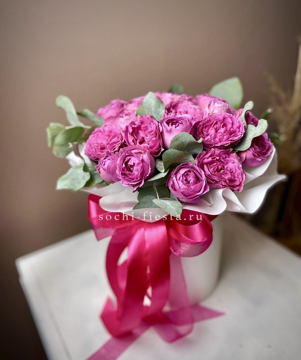 эустома, розы, кустовые розы, диантусы, эустома, озотамнус, макаронс- 6шт., коробка.