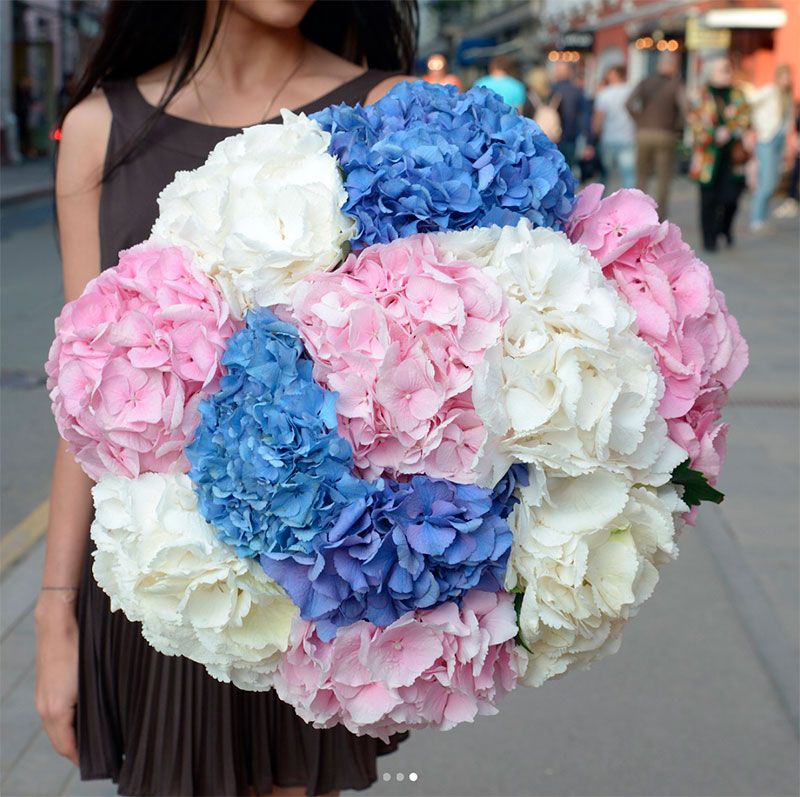 гортензия- 29 шт., дизайнерское оформление По желанию заказчика, композицию можно оформить в корзину.