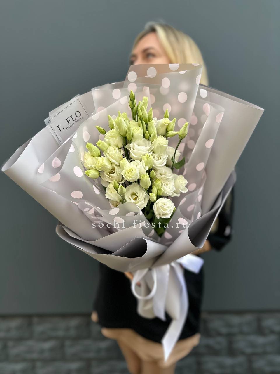 Охапка эустомы в свободной упаковке – чистая форма без усложнений. Веточки располагаются свободно, создавая лёгкий ритм и воздушное присутствие. Монобукет для современного интерьера и минималистичной эстетики.