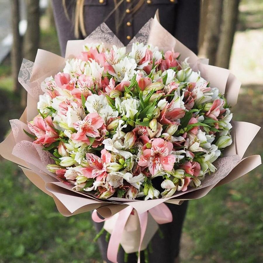 альстромерия - 51 шт., лента, дизайнерская упаковка.
