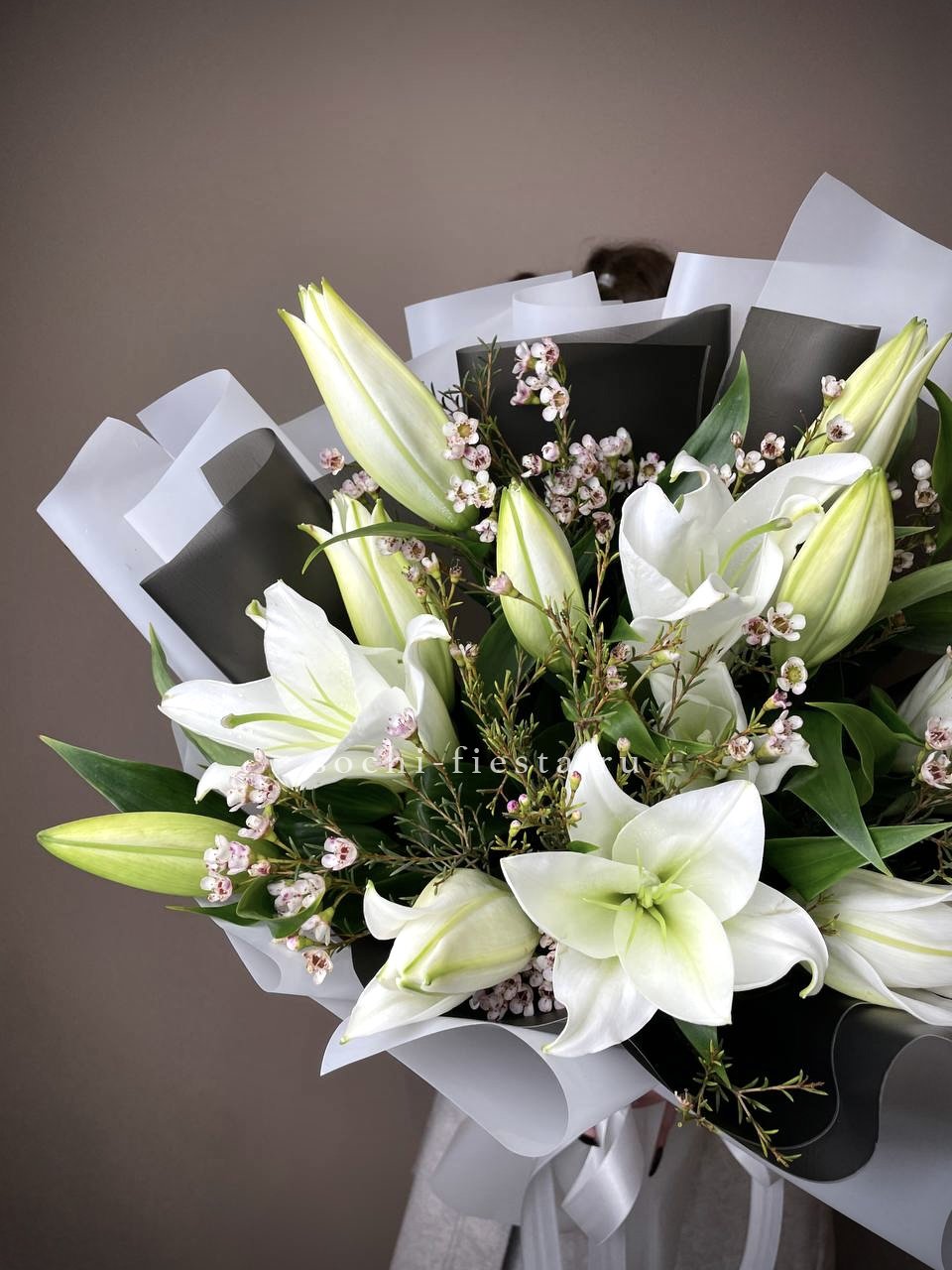 7 лилий, лента, упаковка.