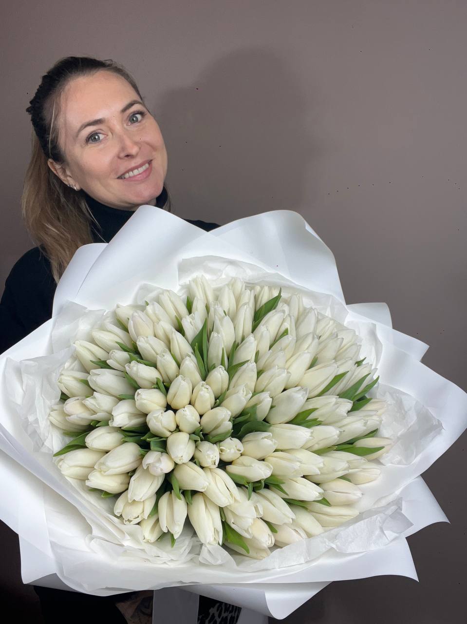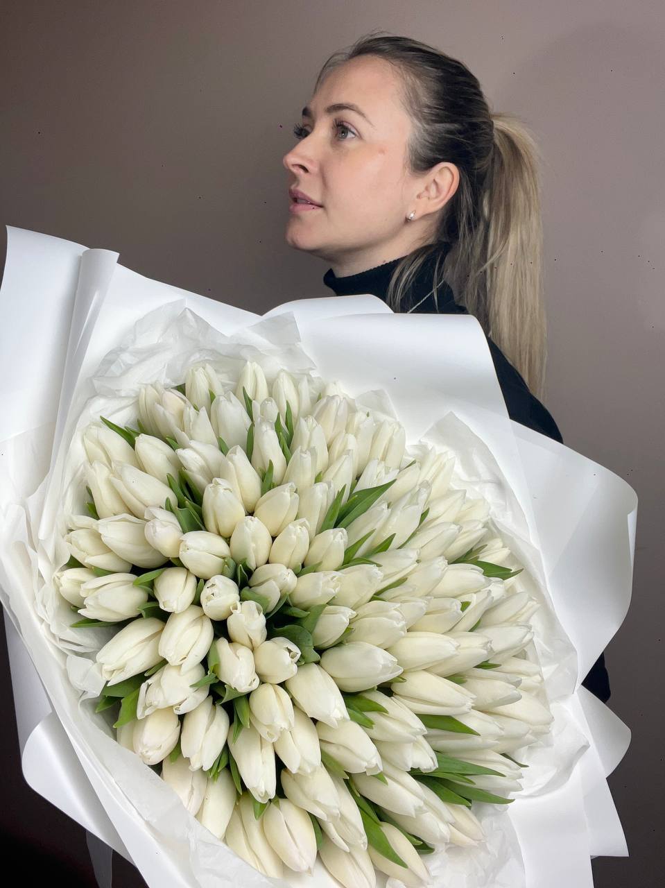 изначальная цена указана за букет из 15 тюльпанов Состав букета на фотографии: 35 тюльпанов, лента, упаковка.