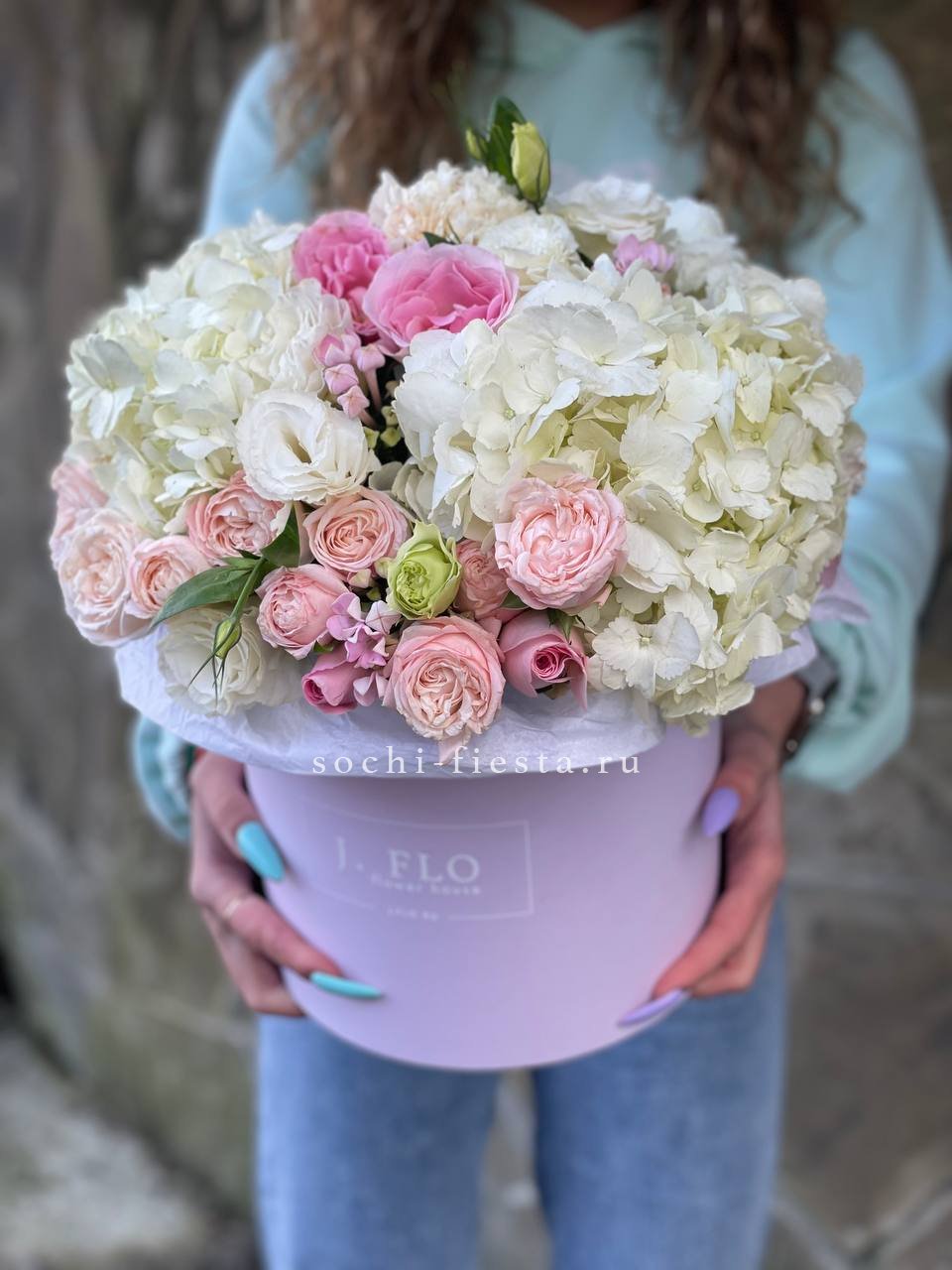 лилии, диантусы, статица, пионы или замена в не сезон эвкалипт, цилиндр.Состав может меняться в зависимости от сезона.