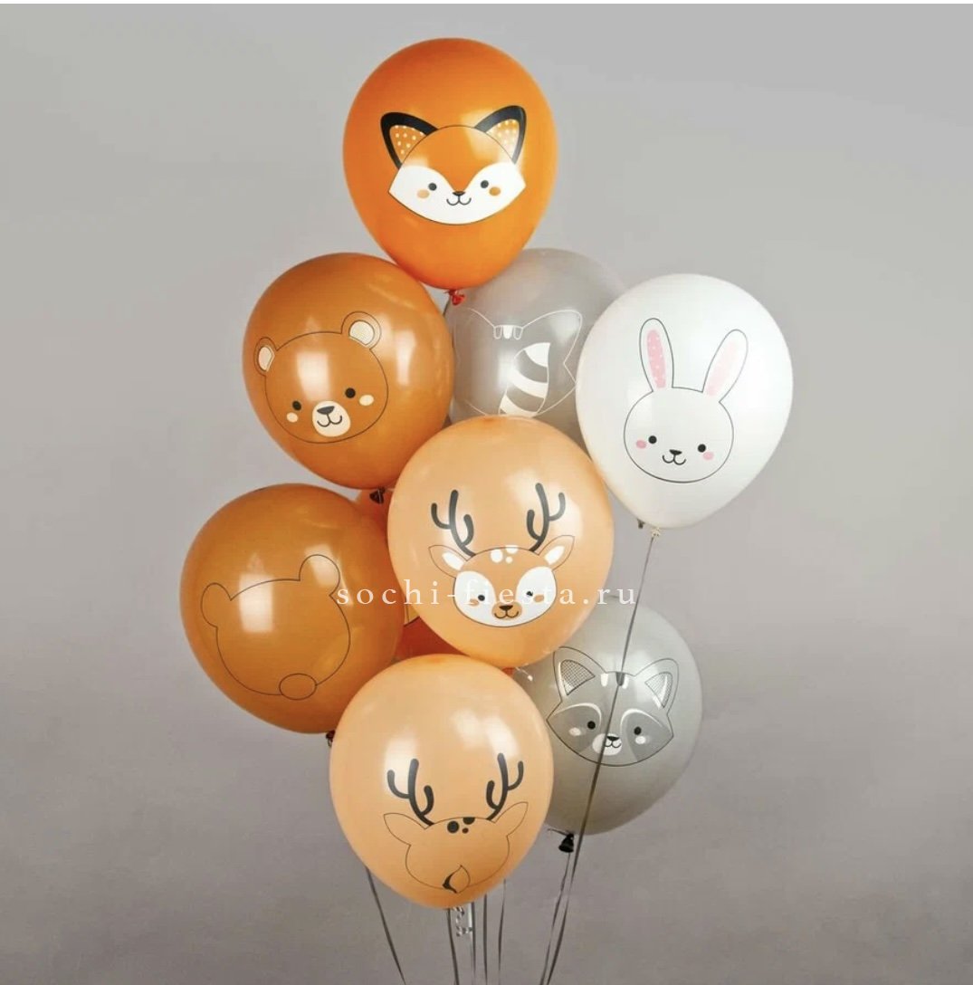 цена указана за 1 латексный шар. На выбор дизайн: зайка, лисенок, мишка, енот, олень. Шар продается как дополнительный ассортимент к букету.