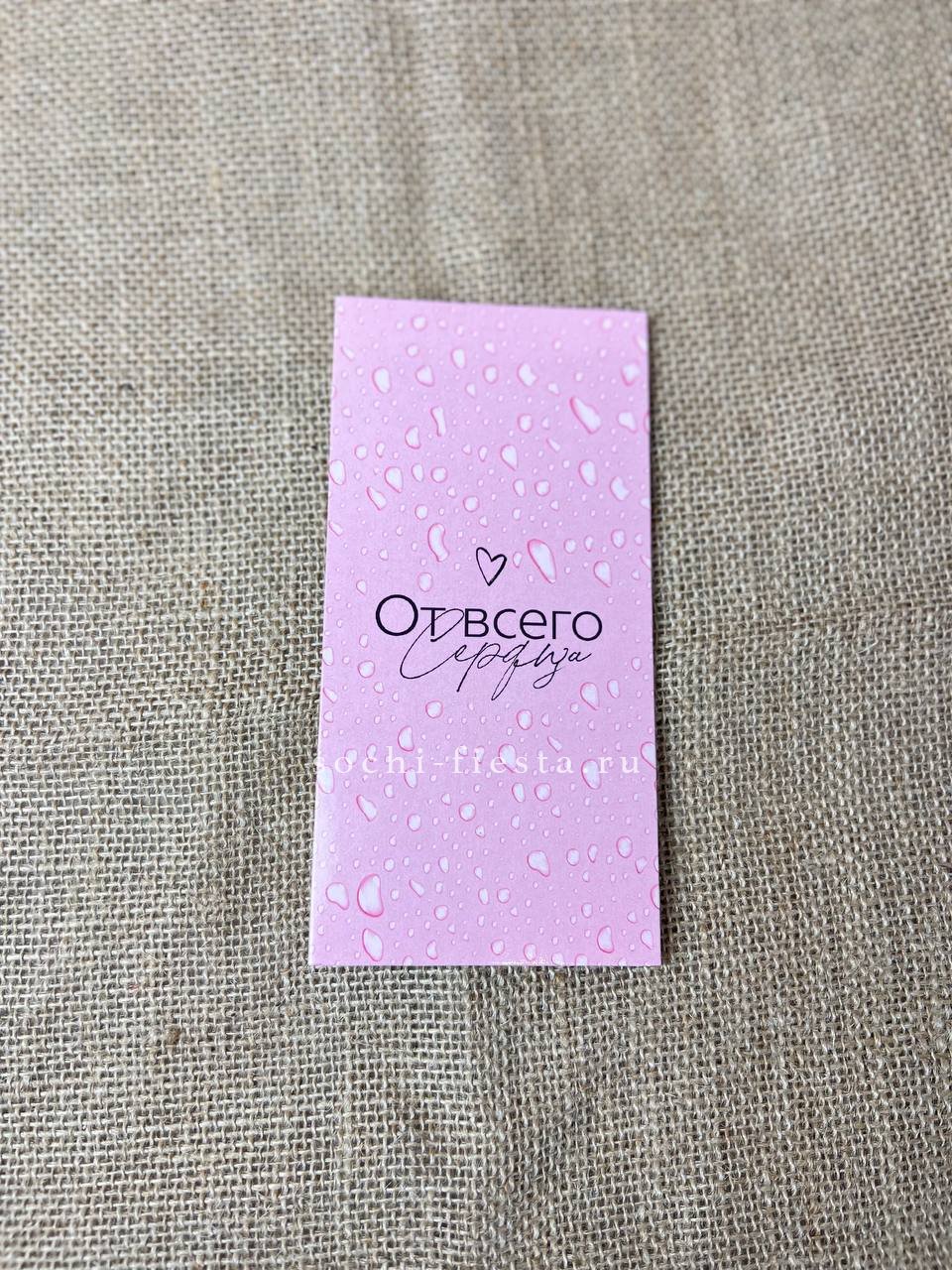 Конверт с лаконичным дизайном и теплой надписью на лицевой стороне. Плотная бумага держит форму и скрывает содержимое. Завершает композицию практичным дополнением.