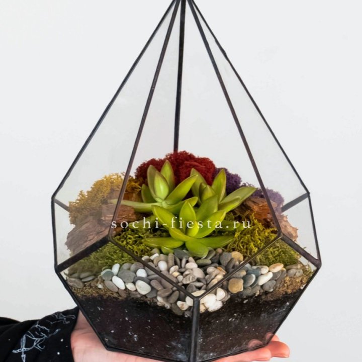 Растения в кашпо, сделанные вручную из стекла в технике Тиффани: суккуленты, мирсина, орхидея, денежное дерево, фикусы, каланхое, замиокулькасы, спатифиллумы