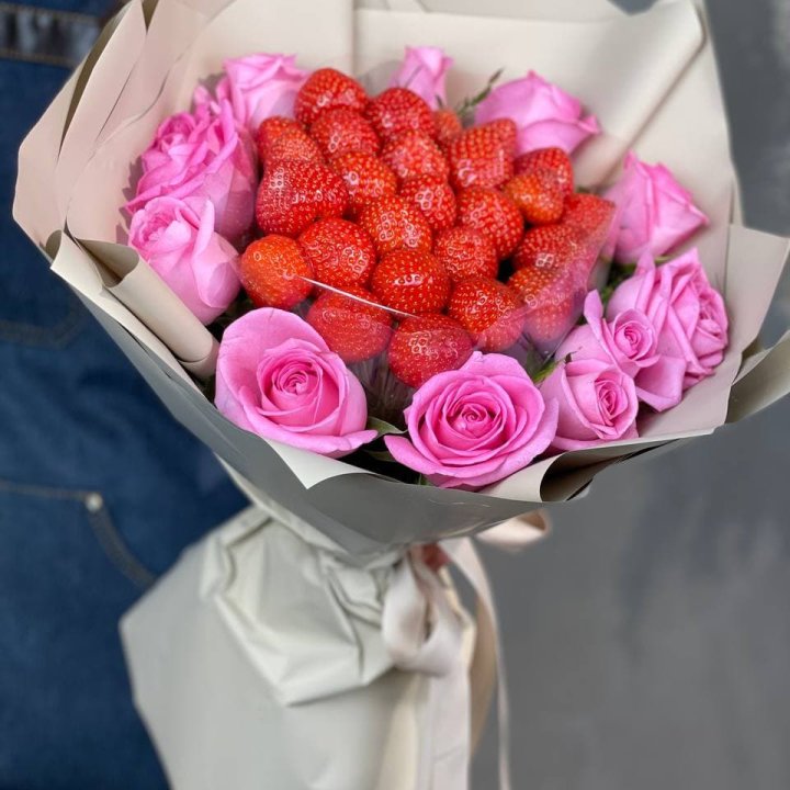 Букеты с клубникой — это оригинальные и аппетитные композиции, сочетающие свежие или декоративные цветы с яркими, сочными ягодами клубники. Такие букеты отлично подходят для романтических подарков, летних мероприятий, свадеб или просто для того, чтобы порадовать близких вкусным и красивым сюрпризом.