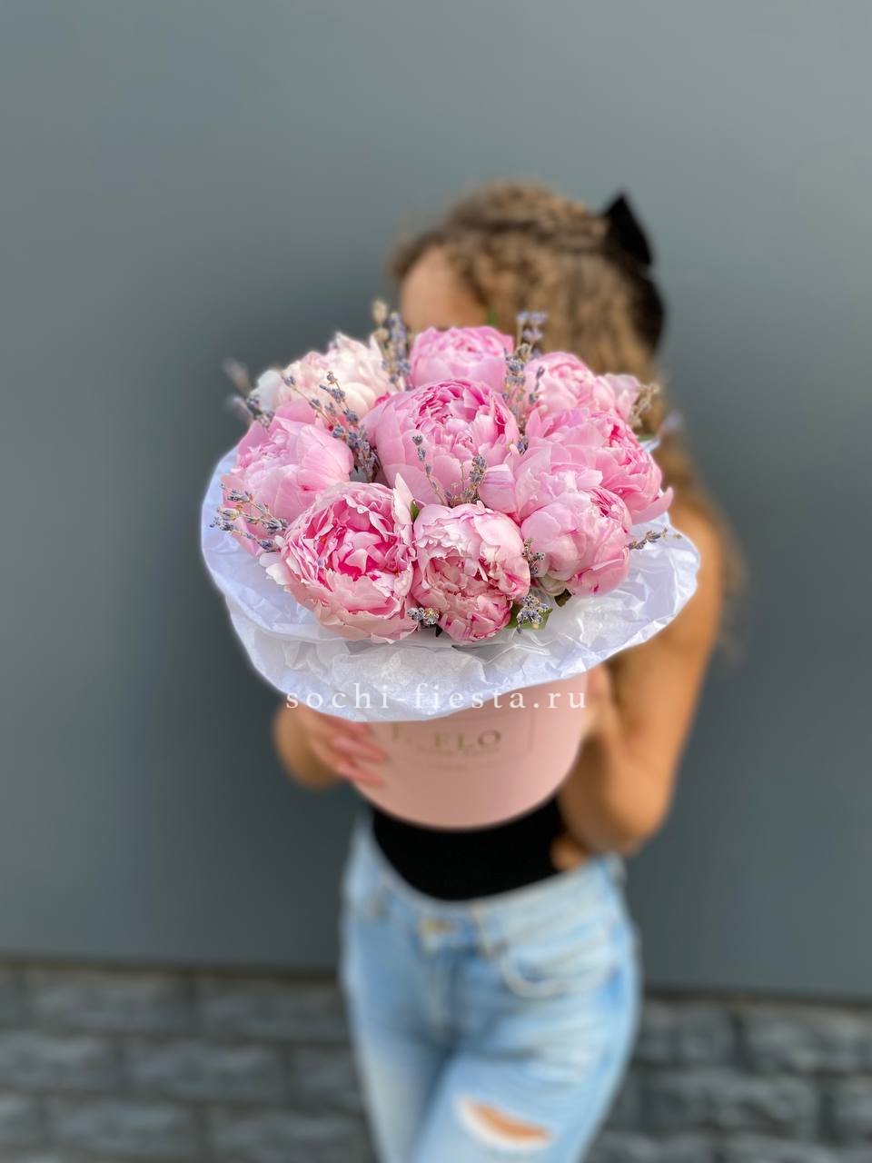 9 пионов, лаванда, цилиндр D16.