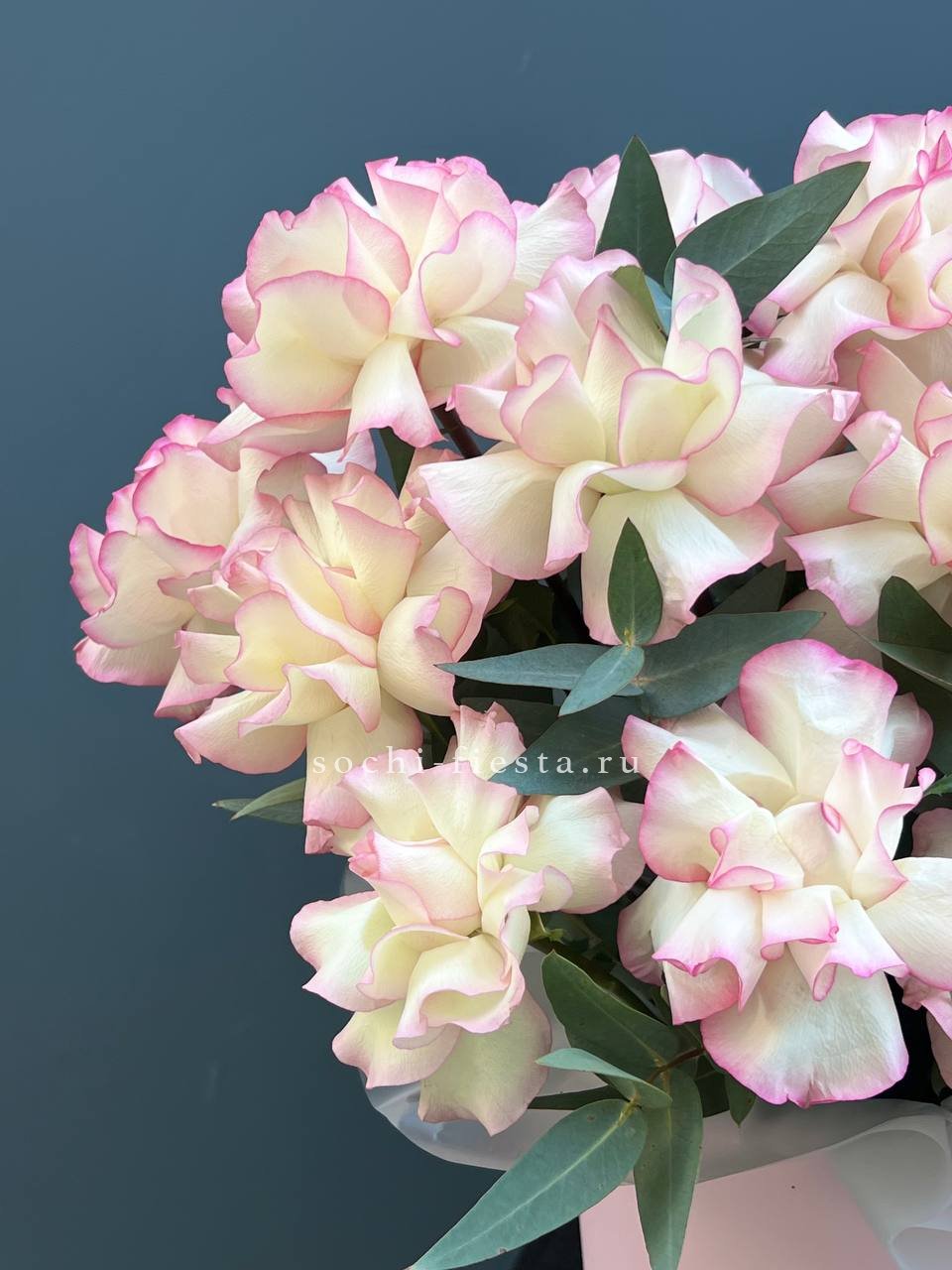 вывернутые  розы Джумилия, цилиндр D20, эвкалипт, лента, упаковка.