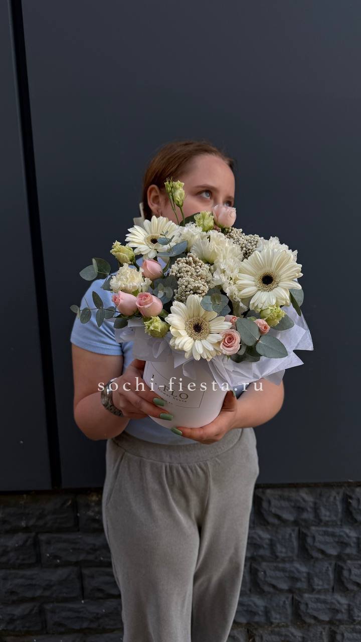 гербера, бомбастик, озотамус, эвкалипт, эустома, бокс 13.