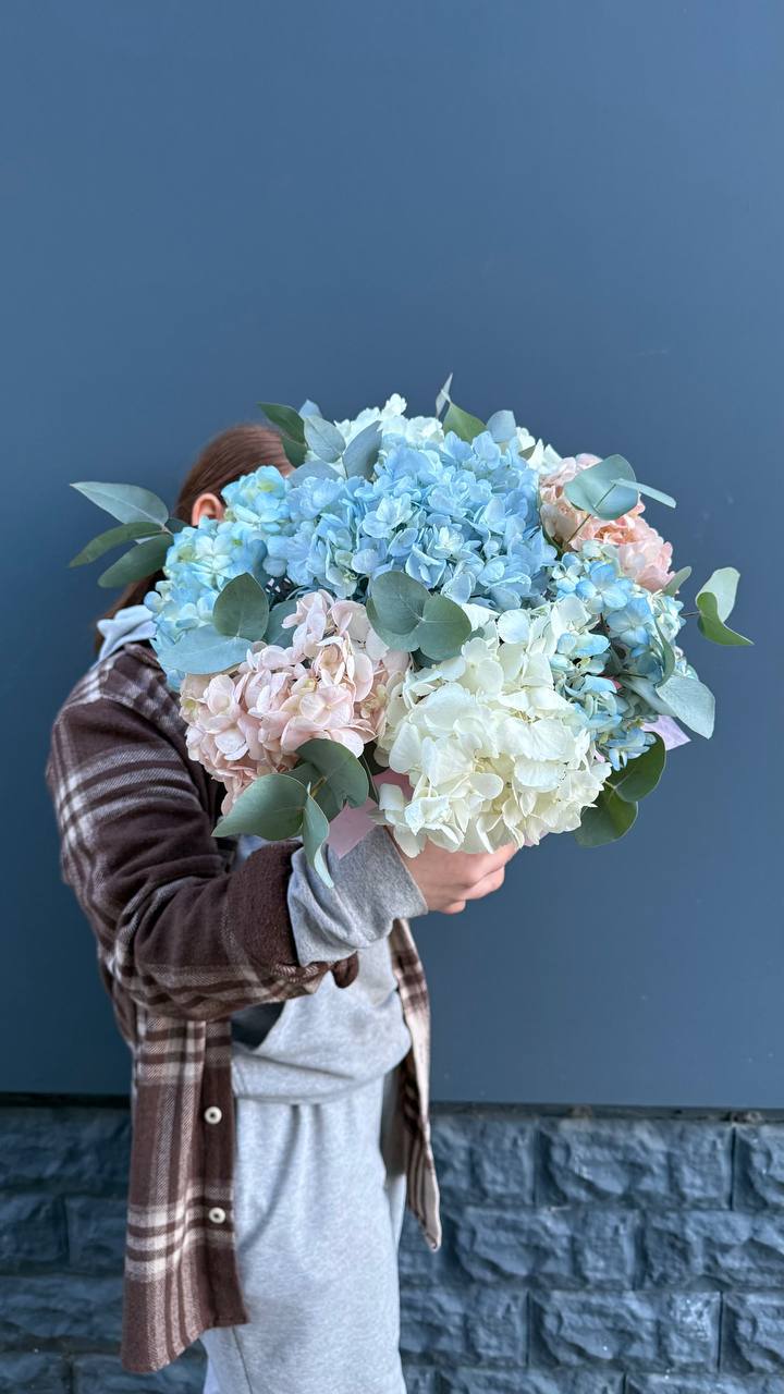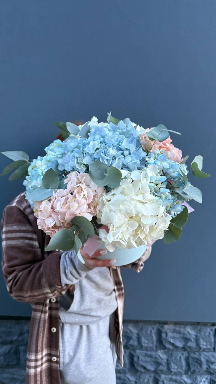 гортензия, диантус, бомбастик, мисти баблс, розы, антиринум, эустома, бокс гигант.