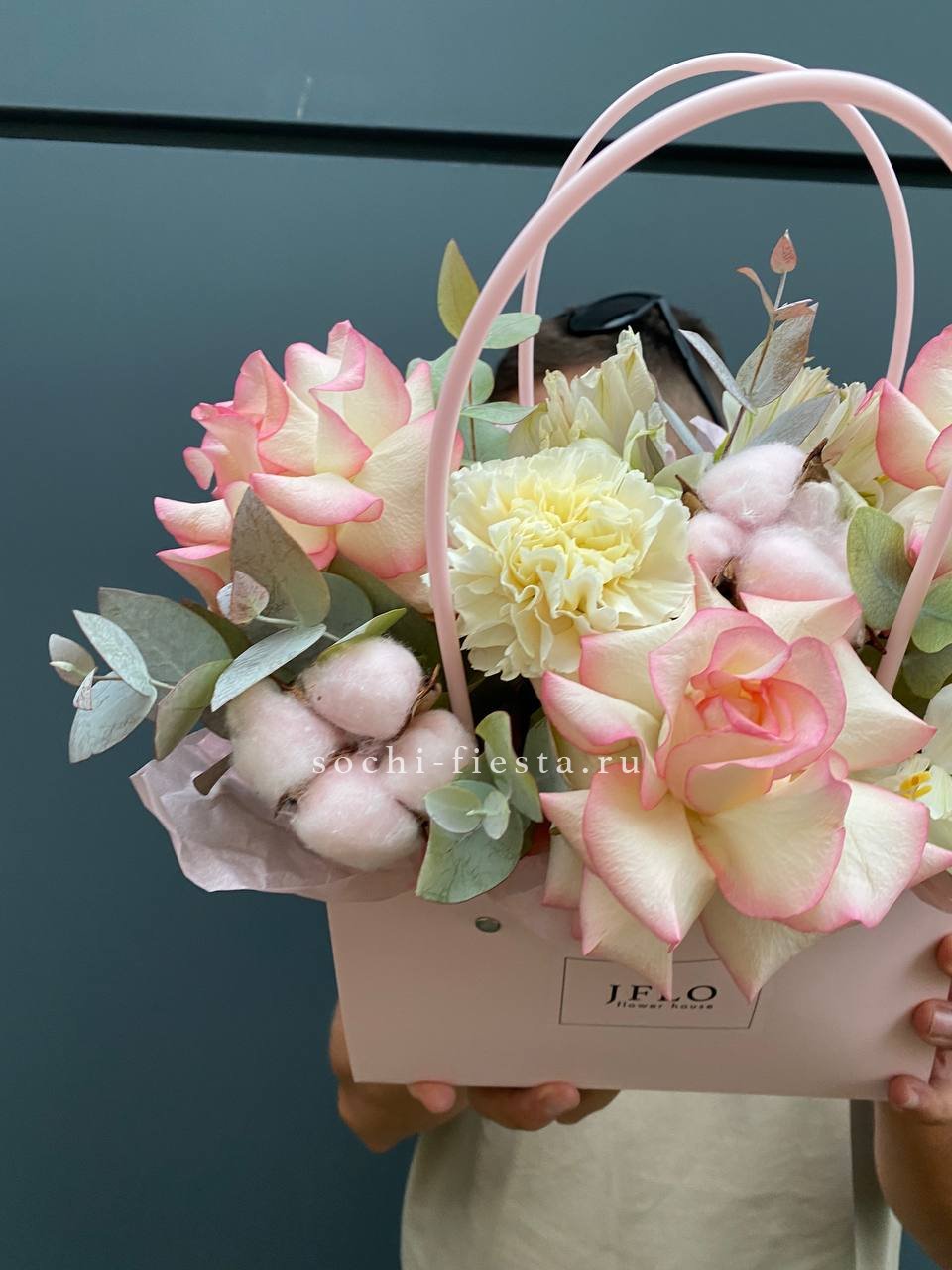 хризантемы, розы, верба, хлопок, эвкалипт, сумочка.