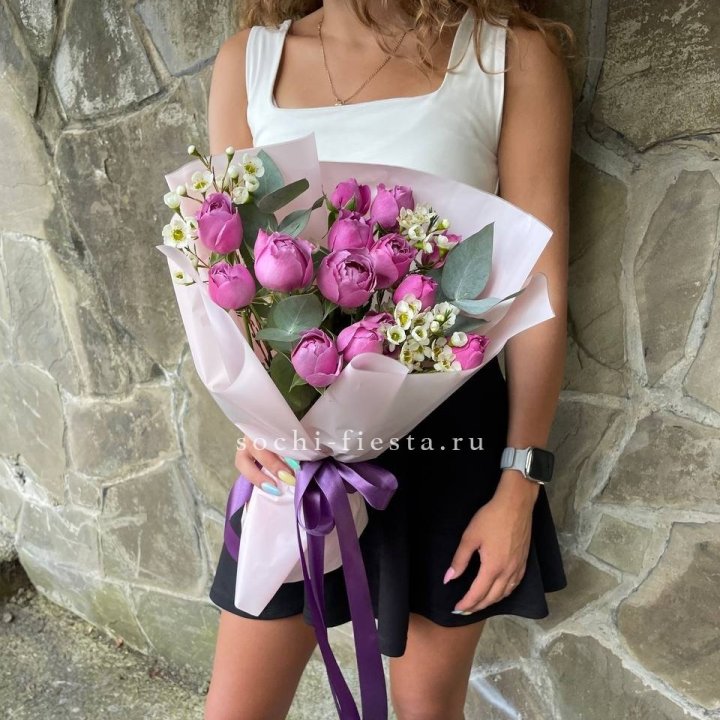 Заказ оформляется на сайте, в Телеграм-канале или по телефону. Моно-букеты 25 и 51 роза всегда в наличии. Специфические сорта, длинные стебли, пионовидные — предзаказ за 2-3 дня.