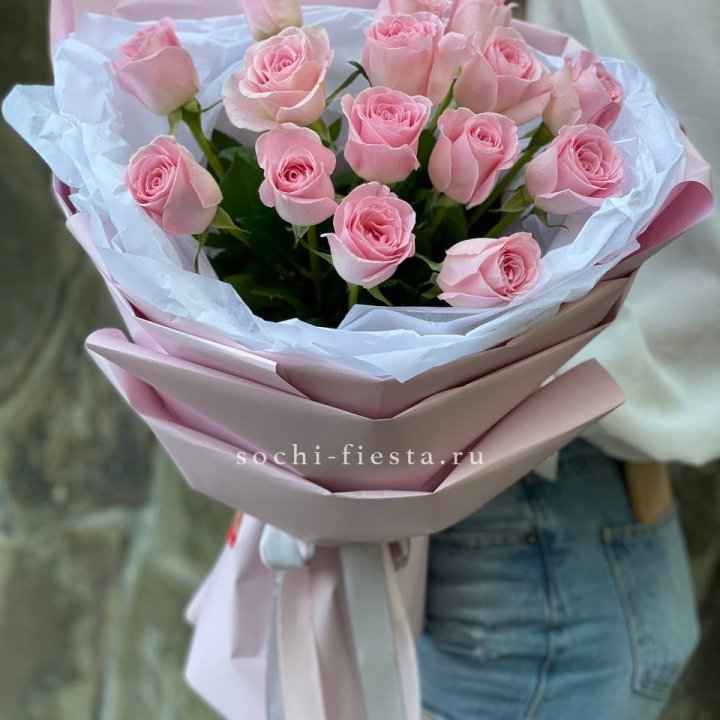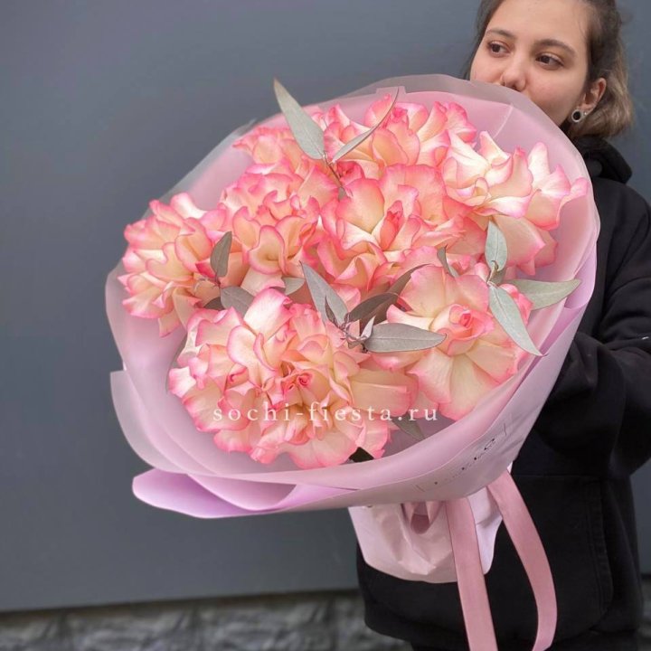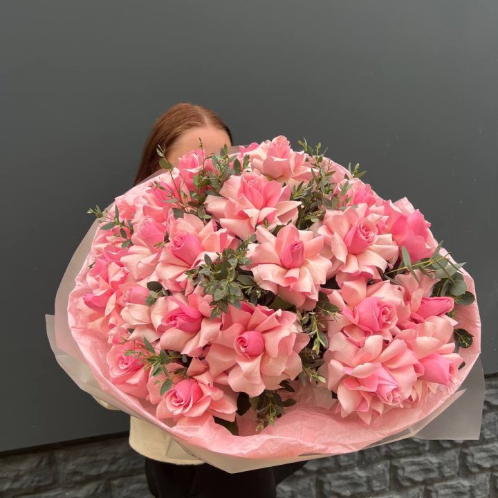 Локальные предпочтения в Прокопьевске — классика. 15-25 роз на свидание или день рождения, 51 на юбилей, 101 на свадьбу или крупный повод. Длина стебля чаще 60-80 см — стандарт местного заказа.