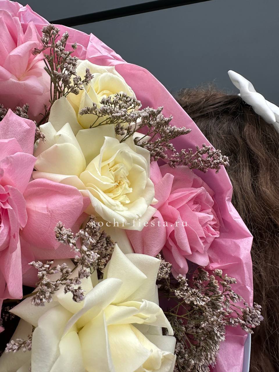 Мы работаем только со свежими цветами — букеты радуют от 7 до 14 дней и дольше при правильном уходе.