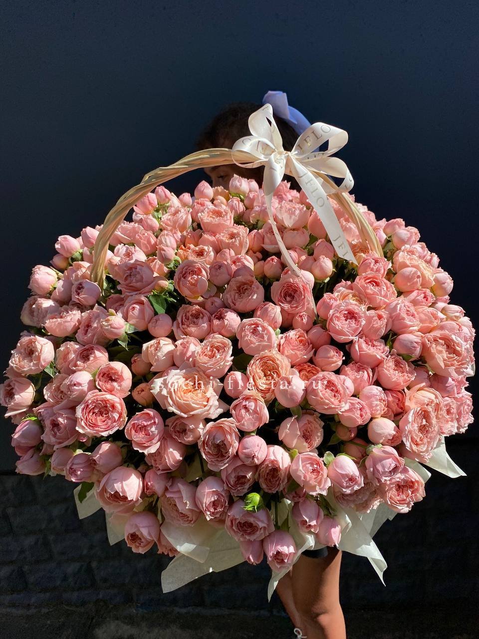 Корзина из пионовидных роз