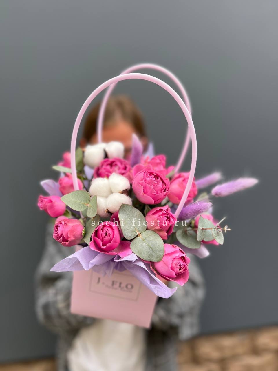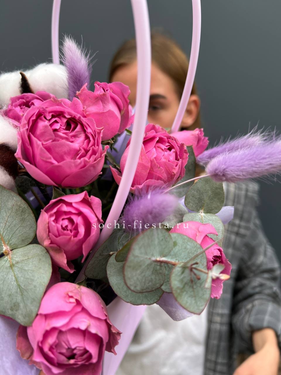 пионовидные розы мисти,  хлопка, эвкалипта, оформления.